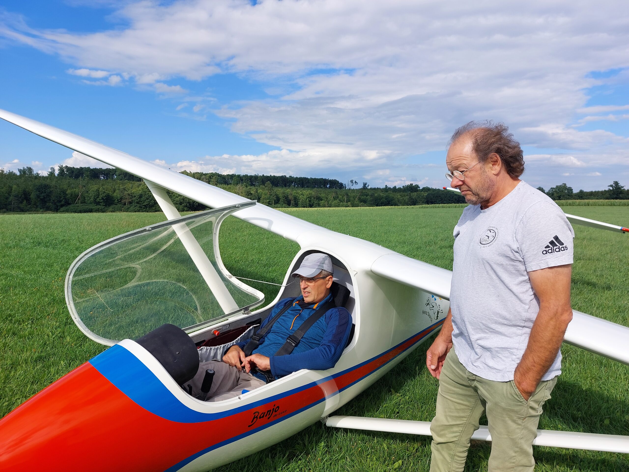 Auf dem Bild: Wolfgang Hauber (im Flieger) und Hans Peter Puritscher
